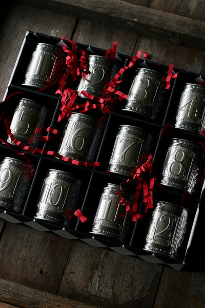 Each numbered tin decoration (with velvet ribbon) is filled with two delicious chocolate truffles, ready to make your countdown extra sweet.