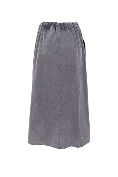 A-shape skirt in vintage dye, with pockets.Elastic waistband.Measurement S/M:½ Waist (relaxed): 34 cm.½ Waist (stretched): 54 cm. Length: 86 cm. 100% Cotton