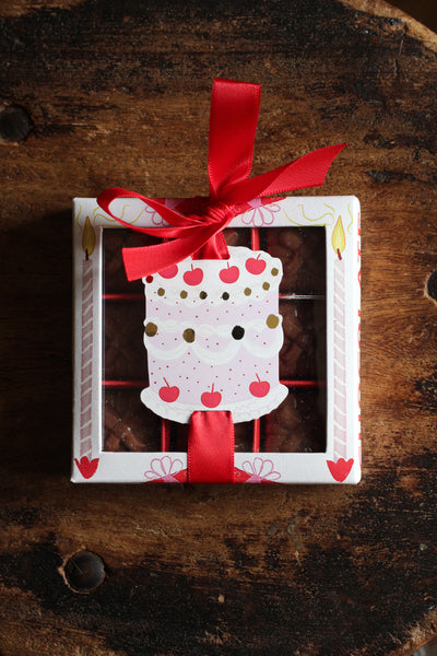 Adorned with a fun and bright Birthday illustrations, Untie the bright red ribbon and inside you will find 9 milk chocolate and vanilla truffles. Super comforting and to be enjoyed after a heavy night of celebrating in front of the TV!