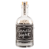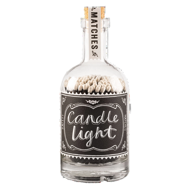 Each match is 10cm long, perfect for lighting crackling winter fires or awkward to reach candle wicks! Or to light many, many birthday candles. Stores in a weighty glass bottle with a cork stopper. There is a strike plate on the bottom.
