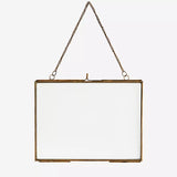 Antique brass, coloured iron portrait hanging photo frame, with decorative edging and chain.