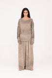 A rounded neck , long sleeved top from SANCTAMUERTE, crafted with a top layer of crepon fabric. Finished with a frayed hemline.