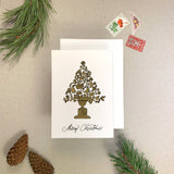 New for this season - this luxury festive card features Imogen's illustration of a collection of things that make up the shape of a Christmas tree, beautifully hot foil printed in metallic gold foil layered on top of black letterpress printing to give a unique vintage feel on our lovely 350gsm paper.