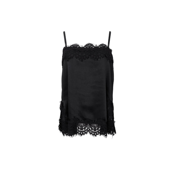 Satin strap top with lace.Measurement S/M: ½ Chest: 45,5 cm.Length: 72 cm.