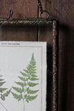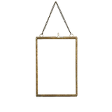 This hanging decorative photo frame pairs clear glass and iron with a refined aged brass finish from india and delicate floral imprints.