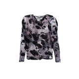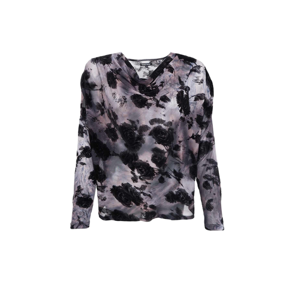 Long sleeve waterfall blouse in mesh with flock print.Measurement S/M: ½ Chest: 55 cm.Length: 63 cm.