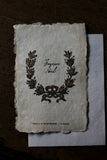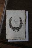 Vintage ephemera crest, printed on handmade 'antiqued' paper. With natural envelope.
