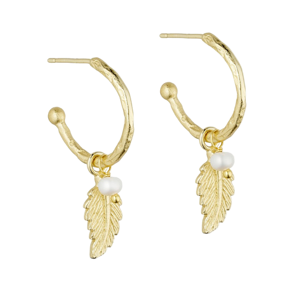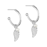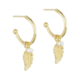 Hoop earrings w. leaf pendant and pearls, 18 mm and butterfly backs
