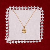 The Maya, 18 carat gold Necklace is handmade with PVD gold plating; a process that bonds gold to metal for enhanced durability. The necklace features a gorgeous sun pendant with a delicate gold link chain. All of the IRIS & I necklaces are waterproof, making them perfect for everyday wear. The Maya necklace has a two-inch extender making it easy to layer with other necklaces.