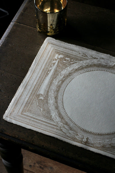 A3 100% eco-friendly cotton paper with uneven/torn edges and a sepia printed design.
