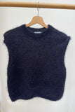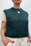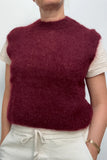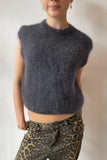 Cropped mohair vest. This modern knitted vest from Øst Londons range is made from wool-rich yarn mohair for a luxuriously soft feel. It features a stylish ribbed detail on the body and trims and comes complete with a timeless crew neck.