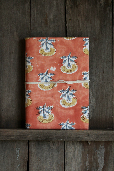 This Indian fabric notebook is designed in India, using the ancestral technique of blockprint. The yellow flowers stand out beautifully against the orange-red background, creating a flowery notebook that catches the eye. Each notebook is a tribute to craftsmanship, making each piece unique and special. Three practical formats A6 (10 x 15 cm): Compact and easy to carry, this A6 novelty notebook is perfect for taking notes on the go. Each notebook contains 96 pages of recycled cotton unlined paper. A cord ties the notebook.