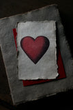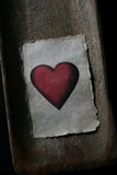 Vintage heart printed on handmade 'antiqued' paper. With red envelope.