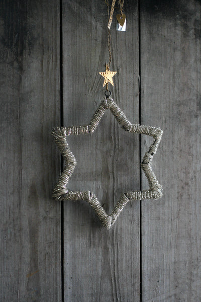 Hanging Beaded Star decoration, with tiny gold foil star detail from Denmark's Walther & Co.