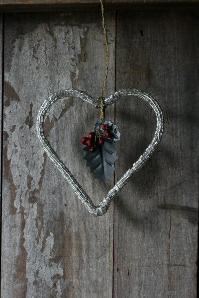 Beaded heart & Zinc Holly decoration from Walther and Co in Denmark.