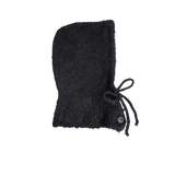 Warm and soft knitted balaclava hat with buttons, and strings for adjustment.100% Polyester